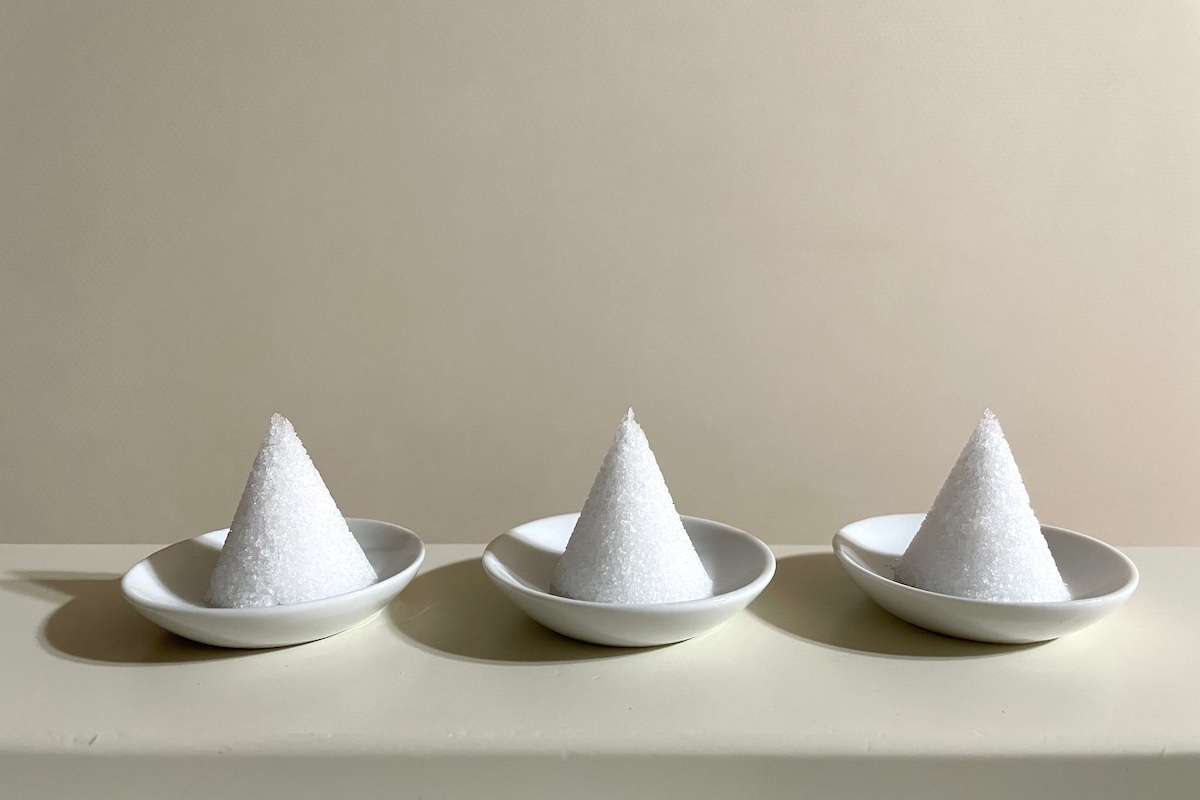 ただし、お塩を円錐形にキリッととんがらせるにはコツがあります。